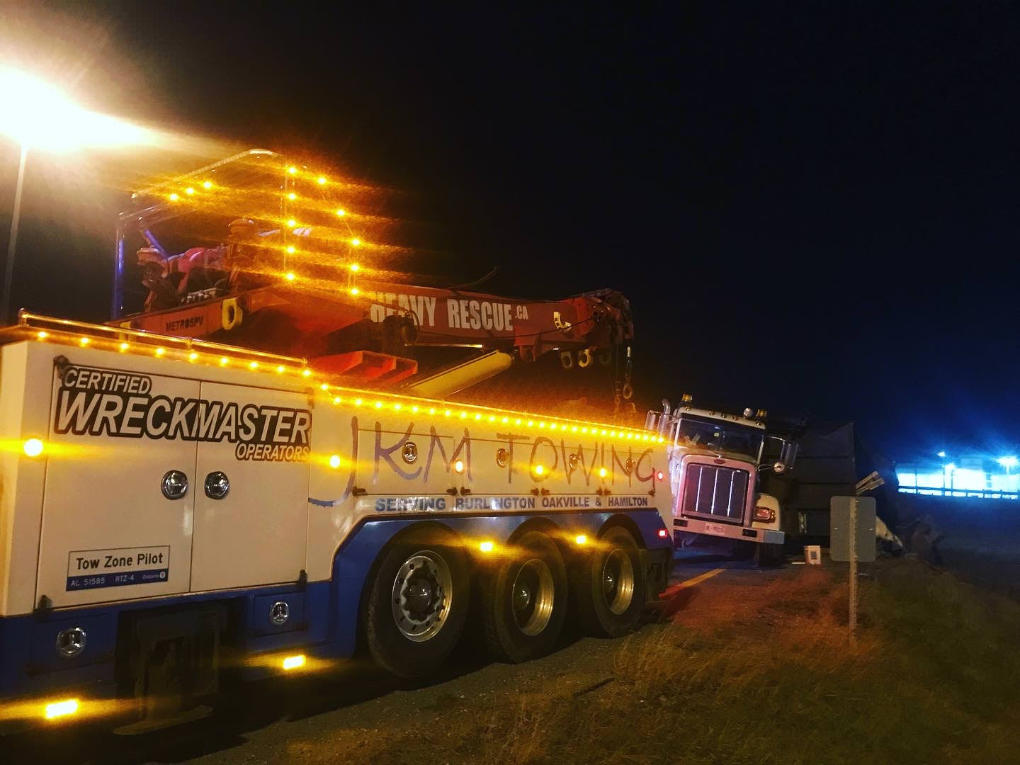 We are the Hamilton-Wentworth and Halton Regions first choice for big rig accidents. Whether it is a jackknifed tractor-trailer on the Q.E.W. or a tragic collision on 401, JKM Towing Inc. is always the call to make for fast and reliable emergency towing response services.